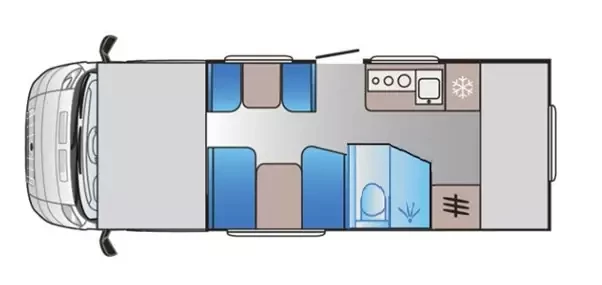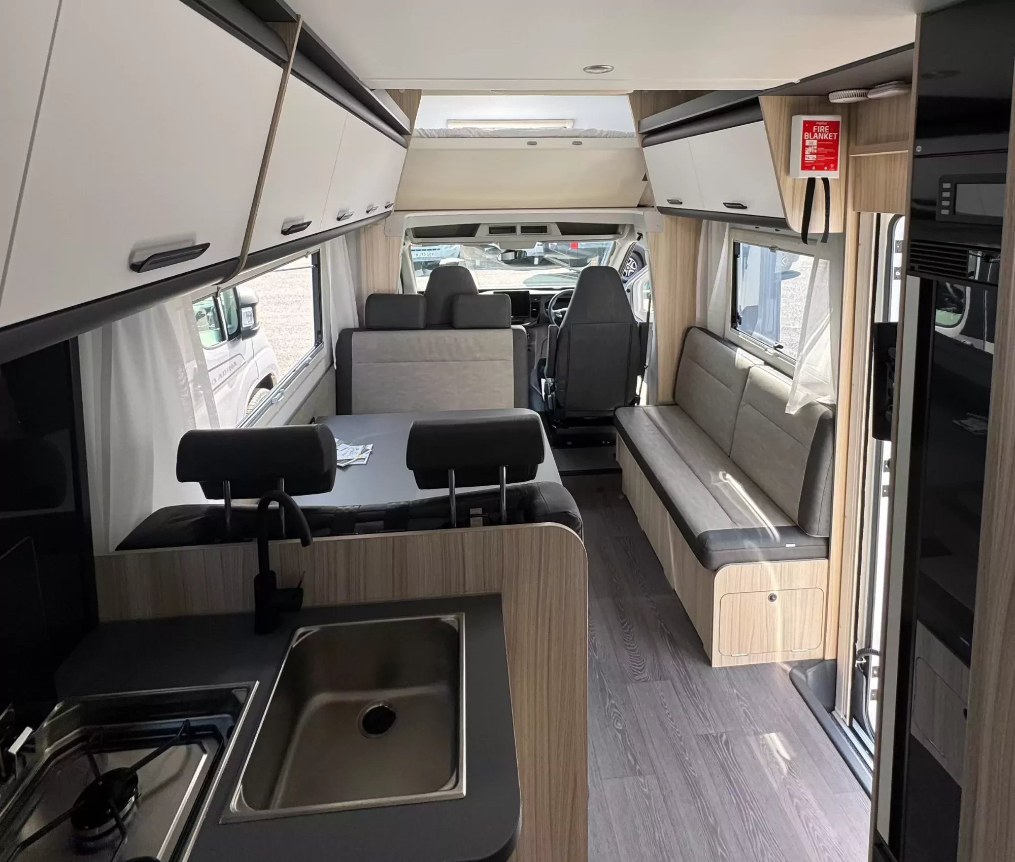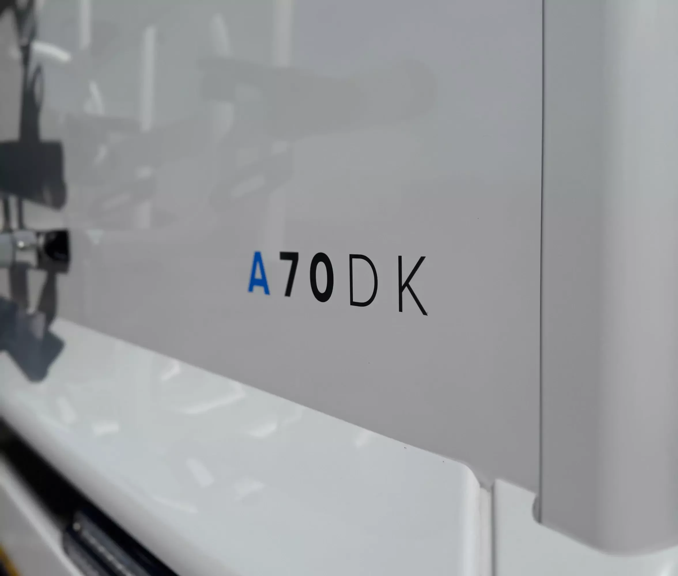 Now in stock from our hire fleet, this spacious 6-berth motorhome with 6 belted seats and rear bunk beds, ideal for families. Practical layout with overcab bed, convertible dinette sleeping, and generous storage throughout. Well-equipped kitchen with hob, oven/grill, sink, and fridge, plus a full washroom with shower, toilet, and washbasin. Comfortable and easy to tour, the A70 DK offers a family-focused design with the space and flexibility needed for longer adventures.
