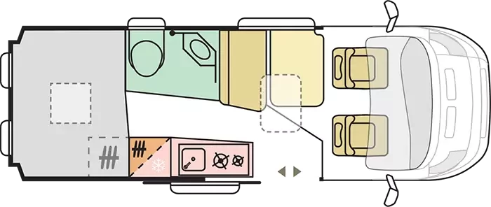A practical dinette, fully equipped kitchen, and functional bathroom ensure every journey is convenient and enjoyable, while a choice of bedroom formats provides flexible accommodation for family or friends.