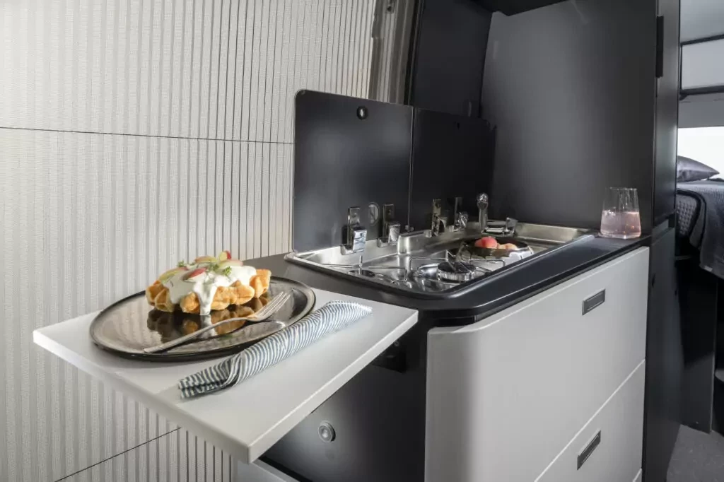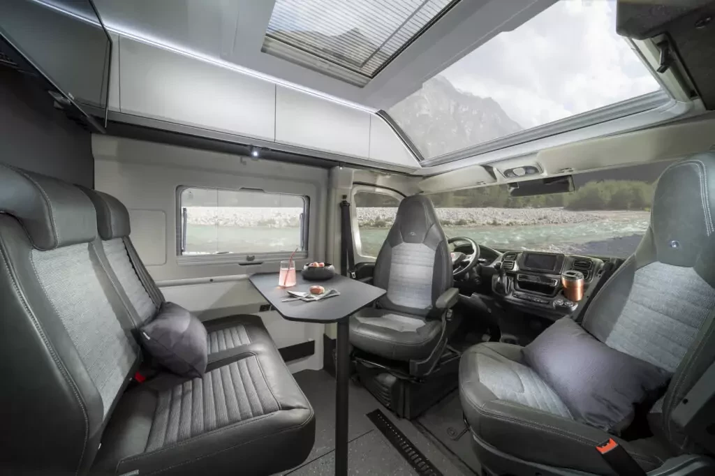 Built on Adria’s pioneering legacy, the Twin Supreme features modern automotive styling and thoughtfully designed interiors for a practical yet stylish campervan experience. The open-plan cabin-loft style layout is bright and airy, enhanced by an opening panoramic window, creating spacious and comfortable living areas.