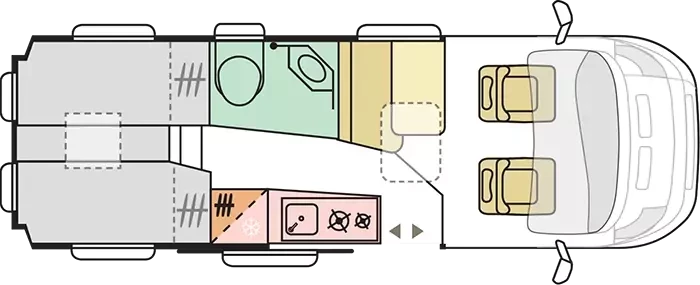 A practical dinette, kitchen, and functional bathroom ensure every journey is convenient and enjoyable, while a choice of bedroom formats provides flexible accommodation for family or friends.