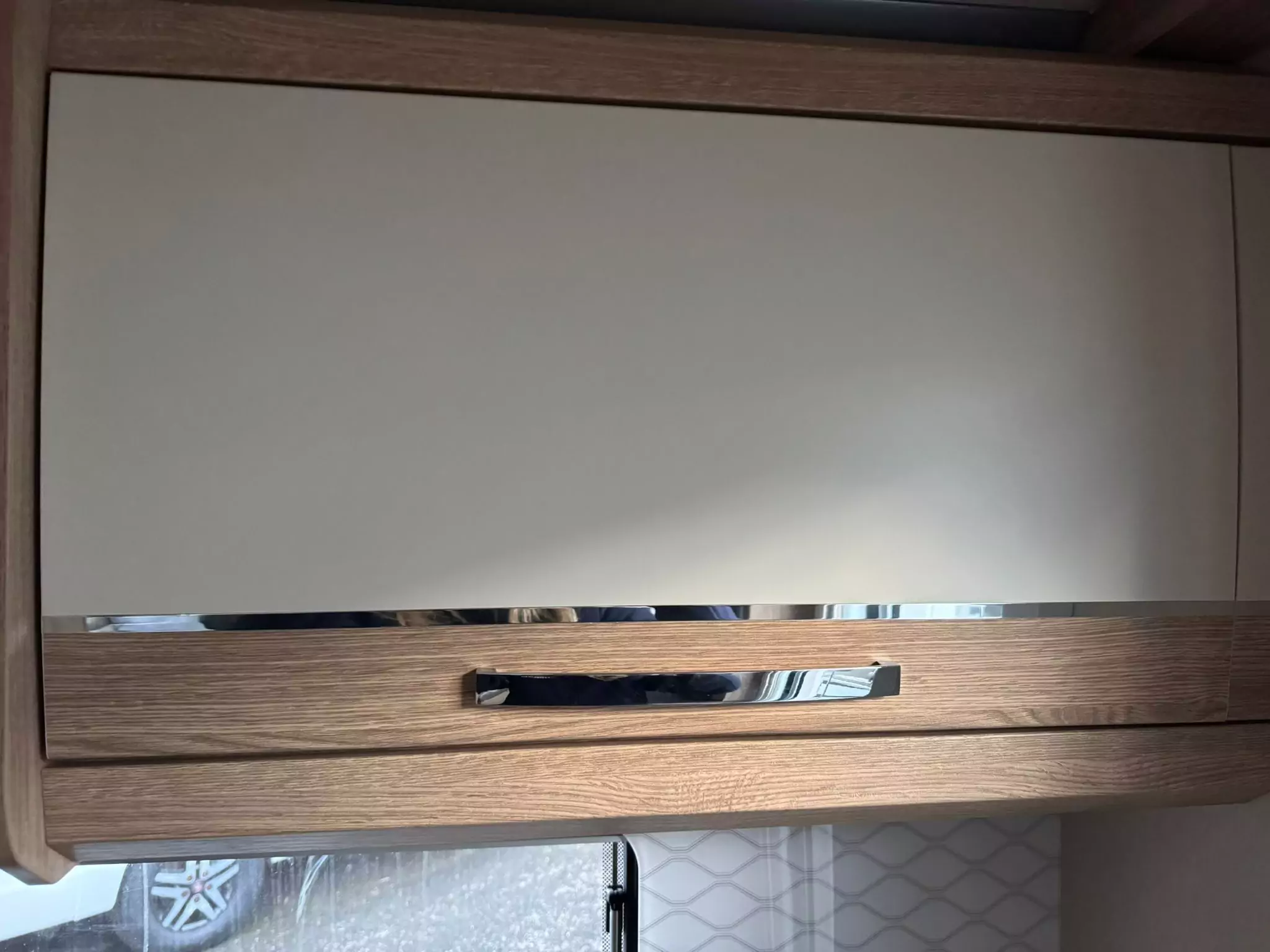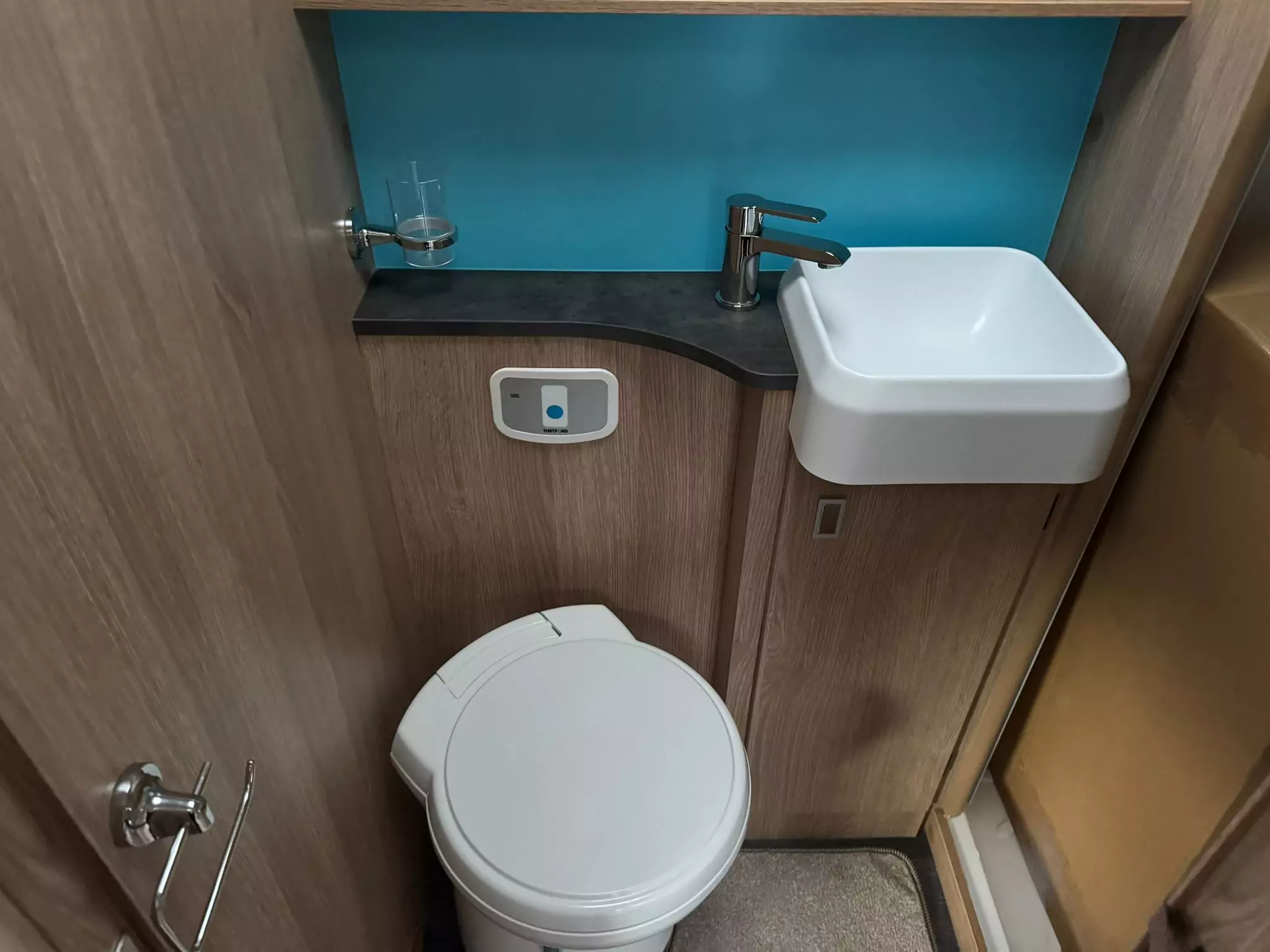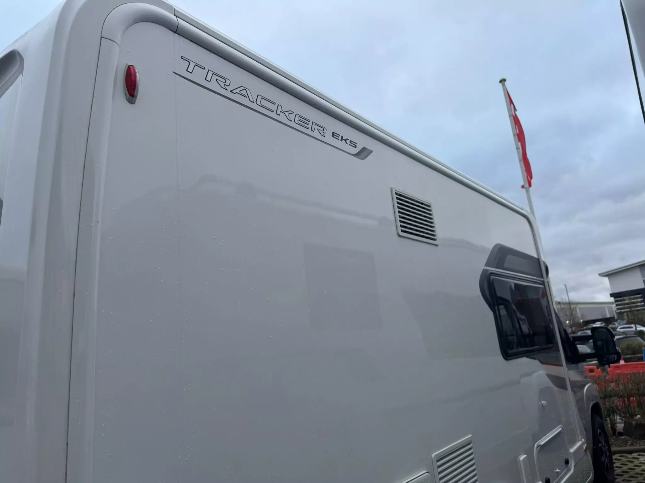 Additional sleeping accommodation can be easily created from the lounge seating, making the Tracker EKS ideal for couples, families, or guests. To the rear, the kitchen is practical and well equipped, offering ample storage, generous worktop space, and a full range of appliances to support everyday cooking while on the road. Adjacent to the kitchen, the washroom is spacious and well designed, featuring a separate shower cubicle and toilet, delivering a high level of comfort and privacy.
