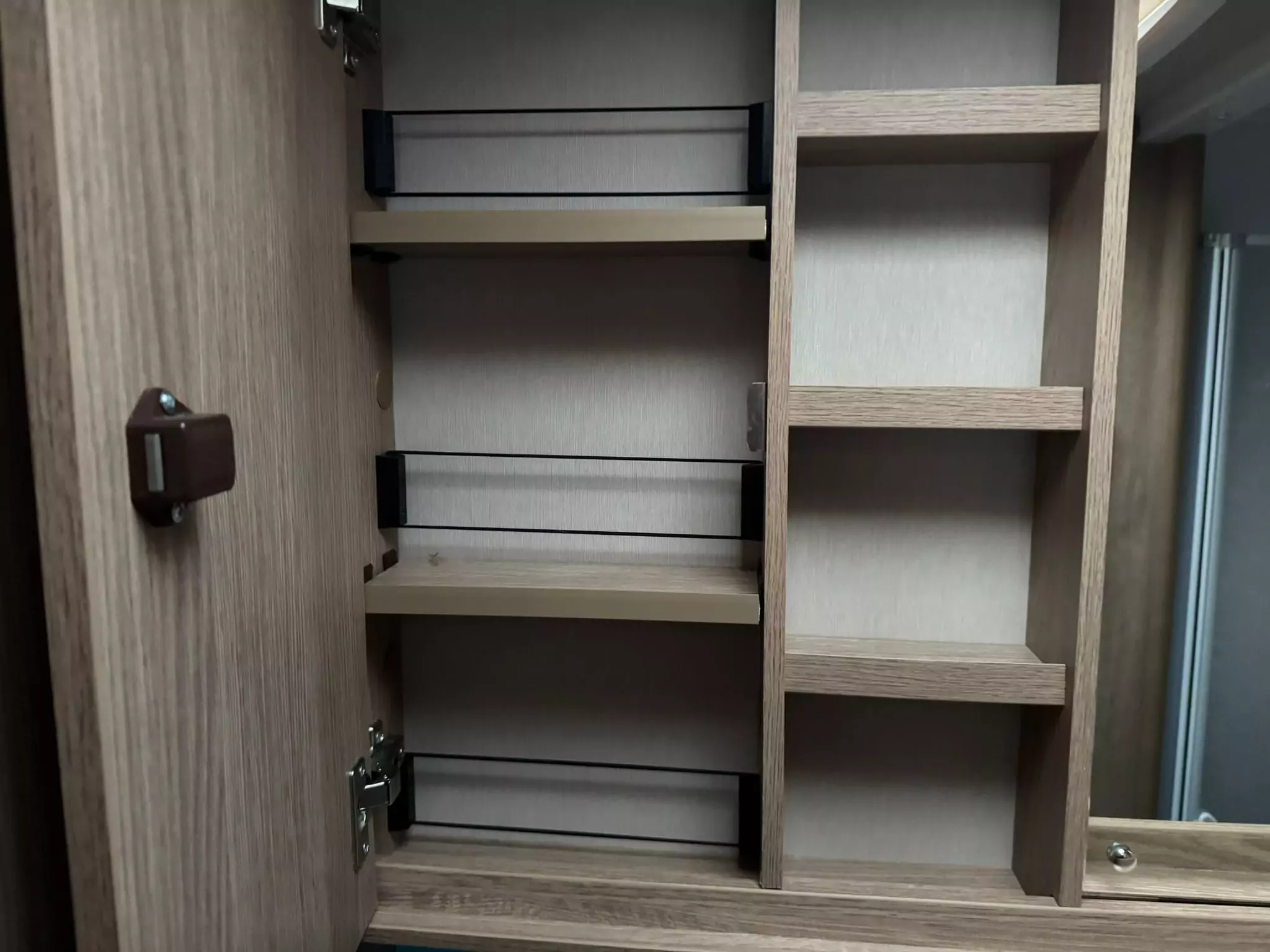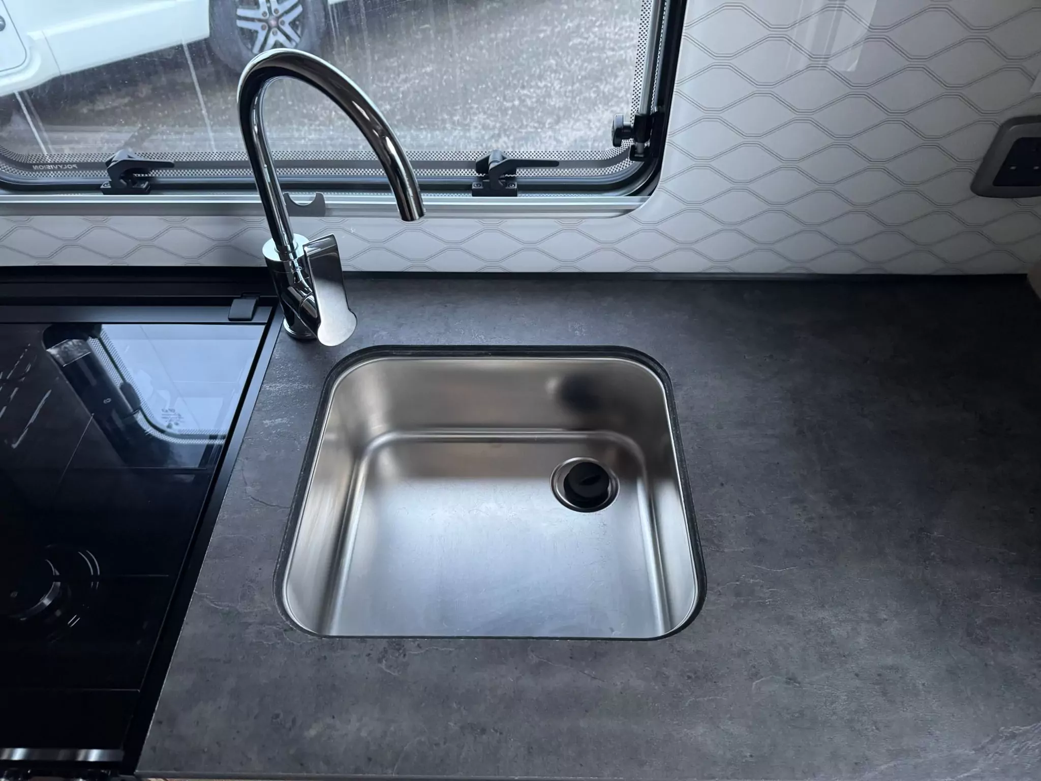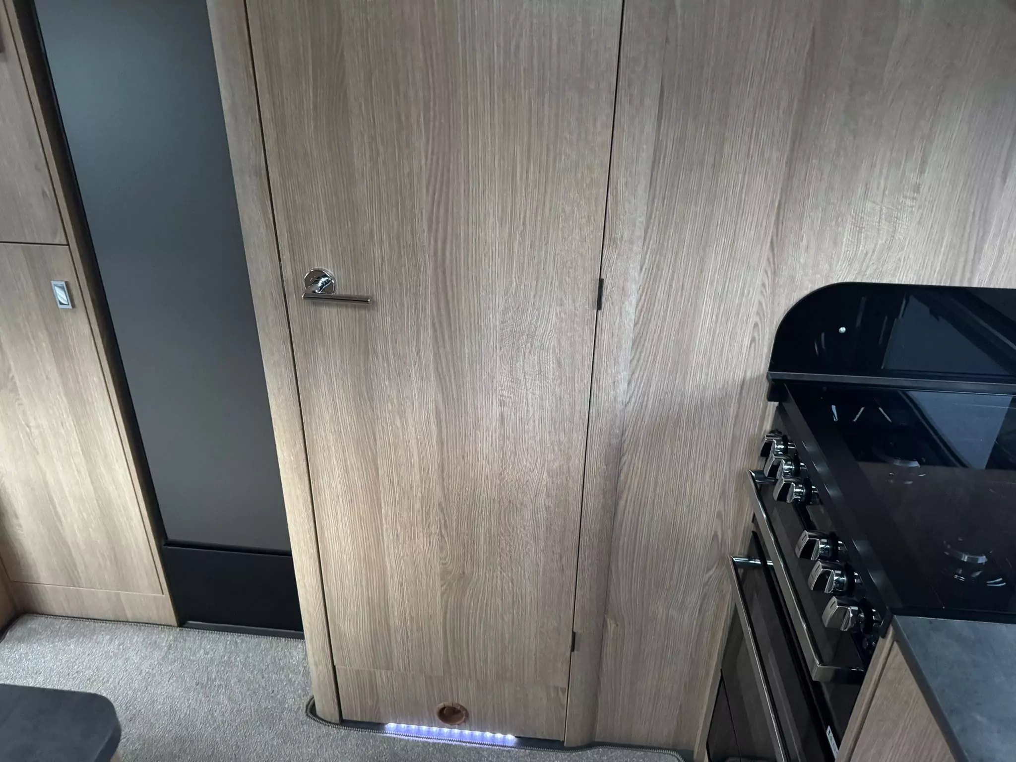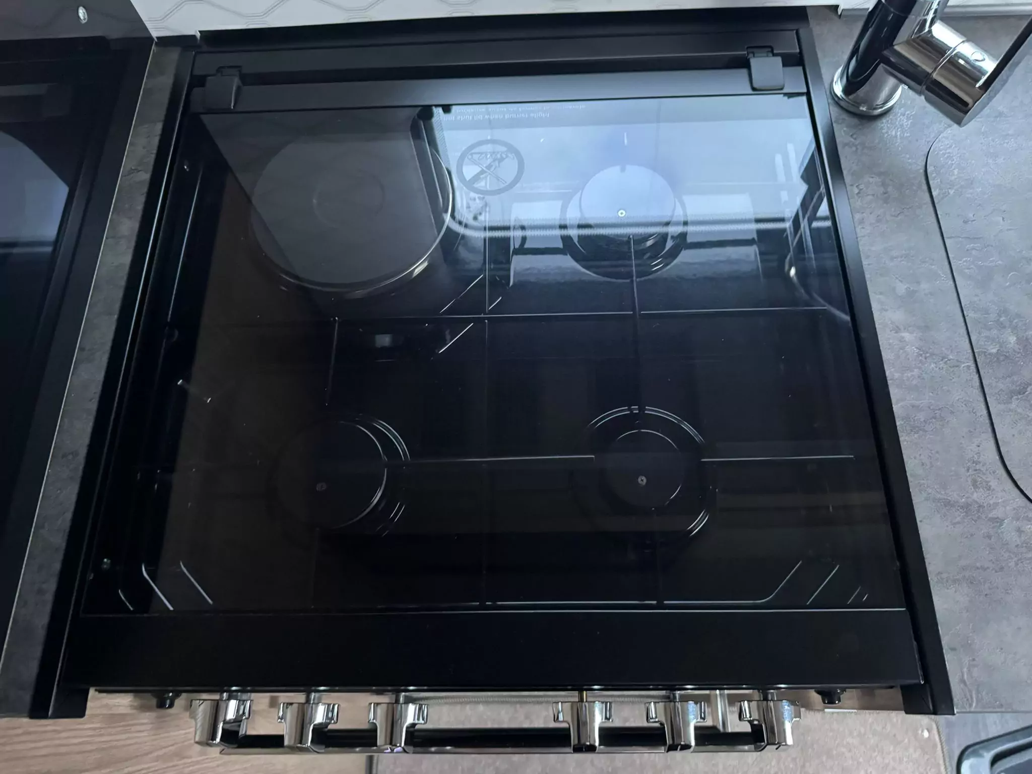 Additional sleeping accommodation can be easily created from the lounge seating, making the Tracker EKS ideal for couples, families, or guests. To the rear, the kitchen is practical and well equipped, offering ample storage, generous worktop space, and a full range of appliances to support everyday cooking while on the road. Adjacent to the kitchen, the washroom is spacious and well designed, featuring a separate shower cubicle and toilet, delivering a high level of comfort and privacy.