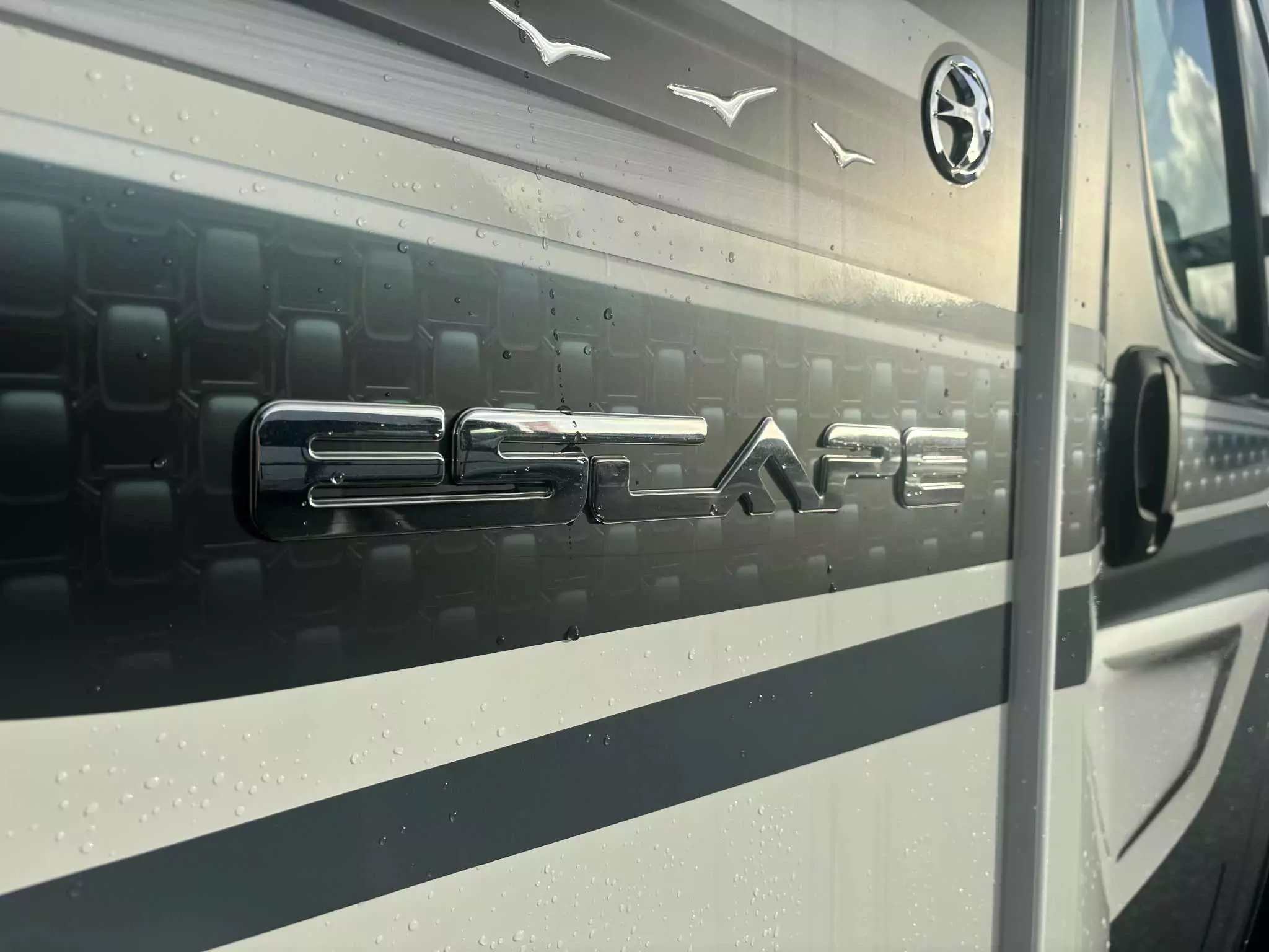 Inside, Escape combines style and practicality with a high 2110mm internal roof height, stylish Sangallo Elm woodgrain cabinetry, cream gloss lockers, and soft furnishings that are both stain resistant and easy to clean. Seating and sleeping arrangements are flexible, with Aguti travelling seats with ISOFix, Duvalay Duvalite Alto mattresses, drop-down beds, and clever storage solutions that maximise space. A boutique-style washroom with Ecocamel Jetstorm shower, illuminated panels, and smart fittings adds a touch of hotel-inspired luxury.