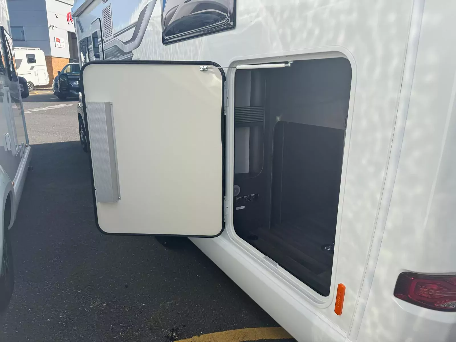 Escape is designed for year-round touring with Alde dual-fuel radiator central heating, Grade 3 insulation, and Swift SMART construction using a strong, timberless GRP bodyshell that’s moisture-resistant and built to last. Off-grid adventures are simple with a 120W solar panel and regulator, external BBQ and cold water shower points, and a rear garage with lighting, sockets, and dual-side access doors.