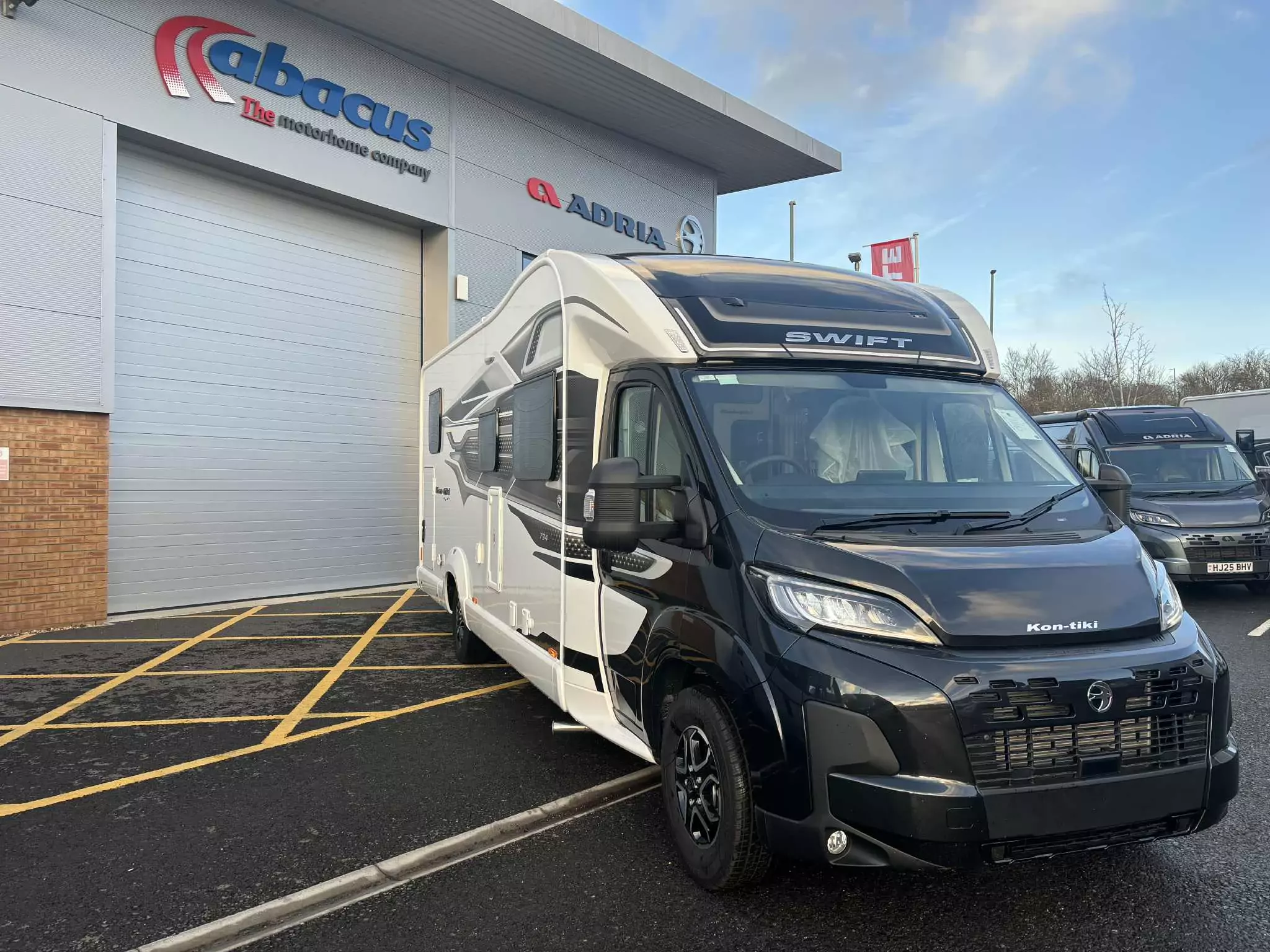 The Swift Kon-Tiki has always been the benchmark for motorhome luxury, and for 2026 it reaches new heights. With sleek modern lines, a new exterior graphics scheme, and the introduction of Ultra-leather® Lentil upholstery, Kon-Tiki combines sophisticated design with meticulous craftsmanship, making every journey the epitome of style and comfort. Available in both single and twin axle layouts, it offers unrivalled space, thoughtful storage, and features such as an external garage for complete practicality without compromise.