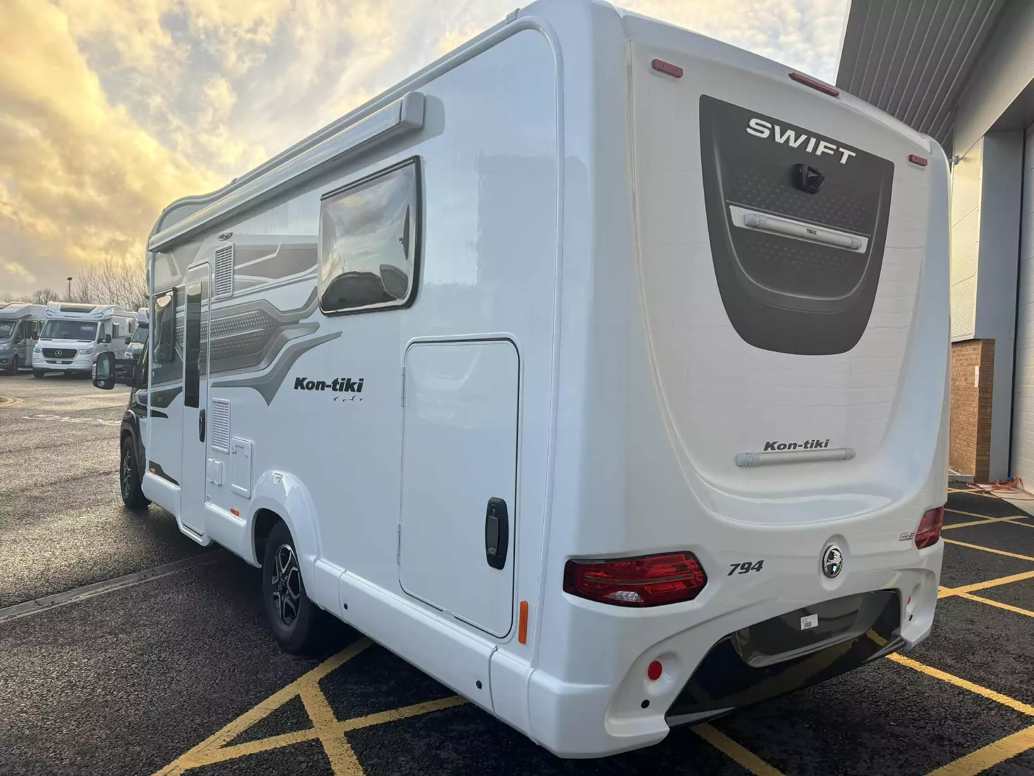 Finished with Alde radiator central heating, LED lighting systems, a rear garage with power and heating, and exterior features like an integrated BBQ point and cold water shower, the 2026 Swift Kon-Tiki is the pinnacle of motorhome living. Spacious, connected, and uncompromisingly elegant, it delivers the ultimate in touring luxury for those who demand nothing less than the best.