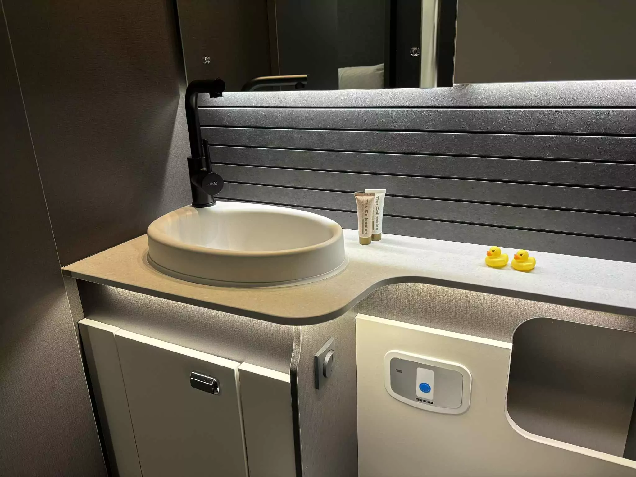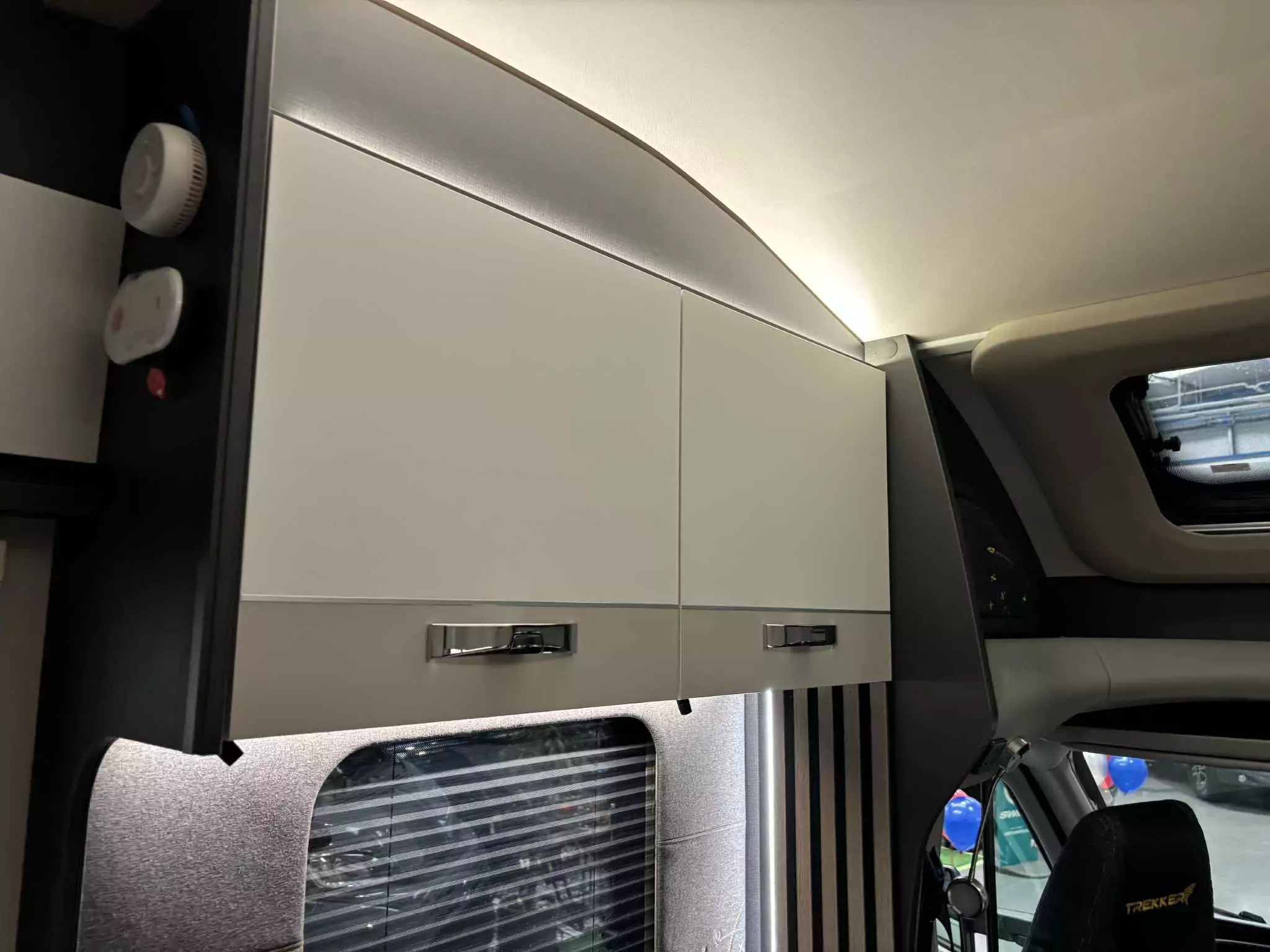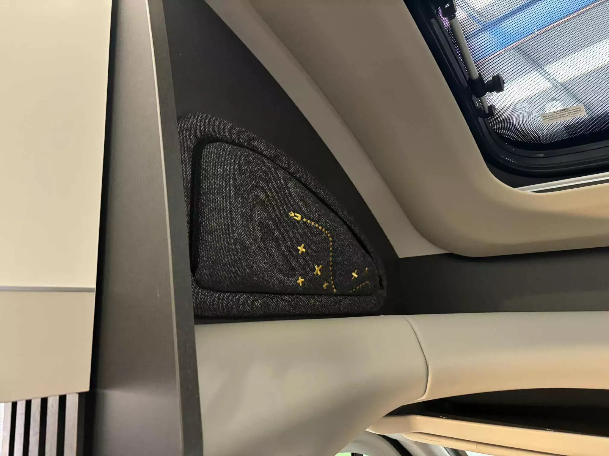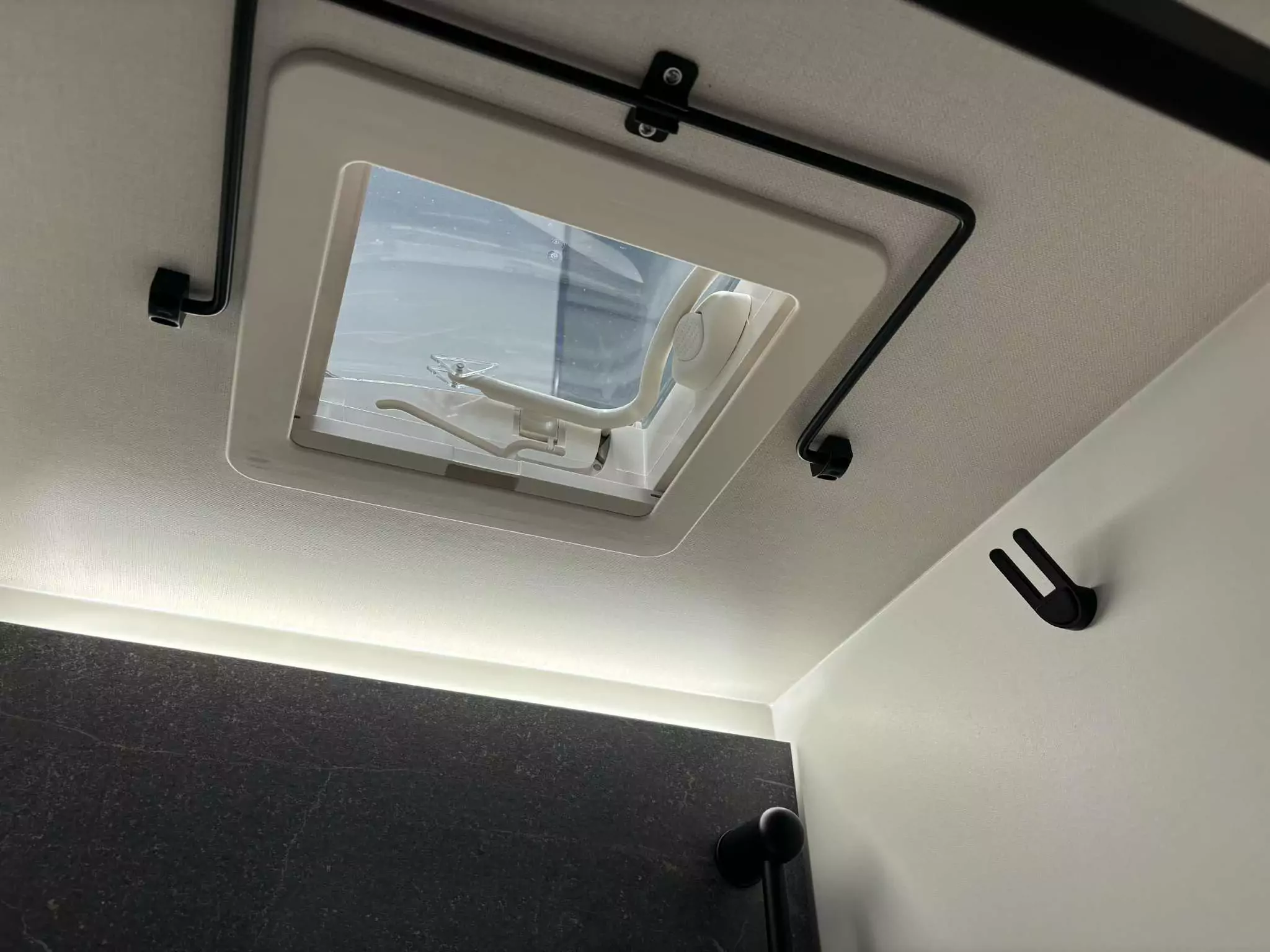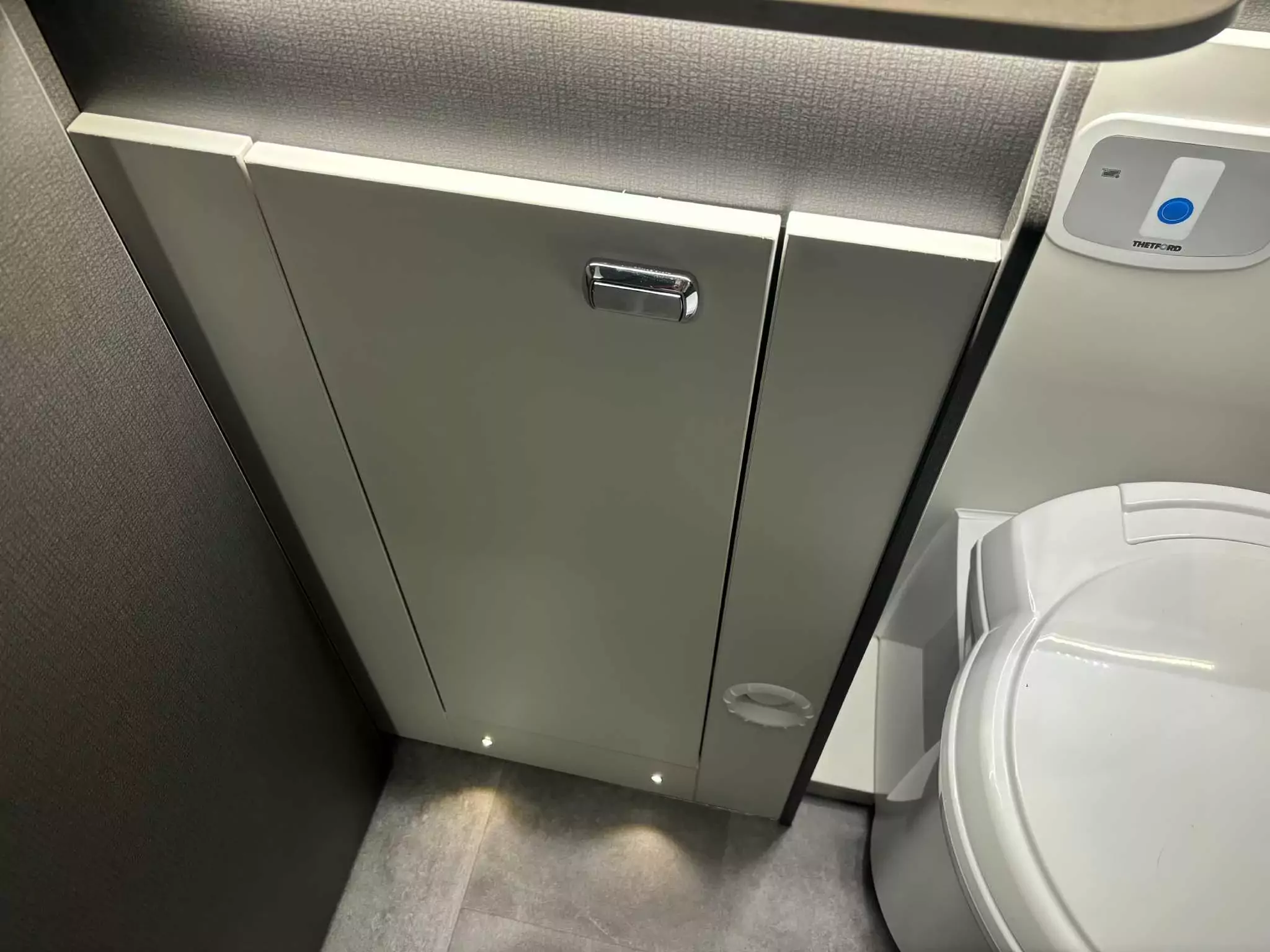 The well-appointed kitchen features a Thetford oven and grill, a three-burner gas hob with electric hotplate and electronic ignition, plus a Dometic 133-litre tall slimline fridge with automatic energy selection and removable freezer compartment. A practical washroom and Truma CombiNeo heating and hot water system ensure year-round comfort, whether on UK touring breaks or longer European adventures.