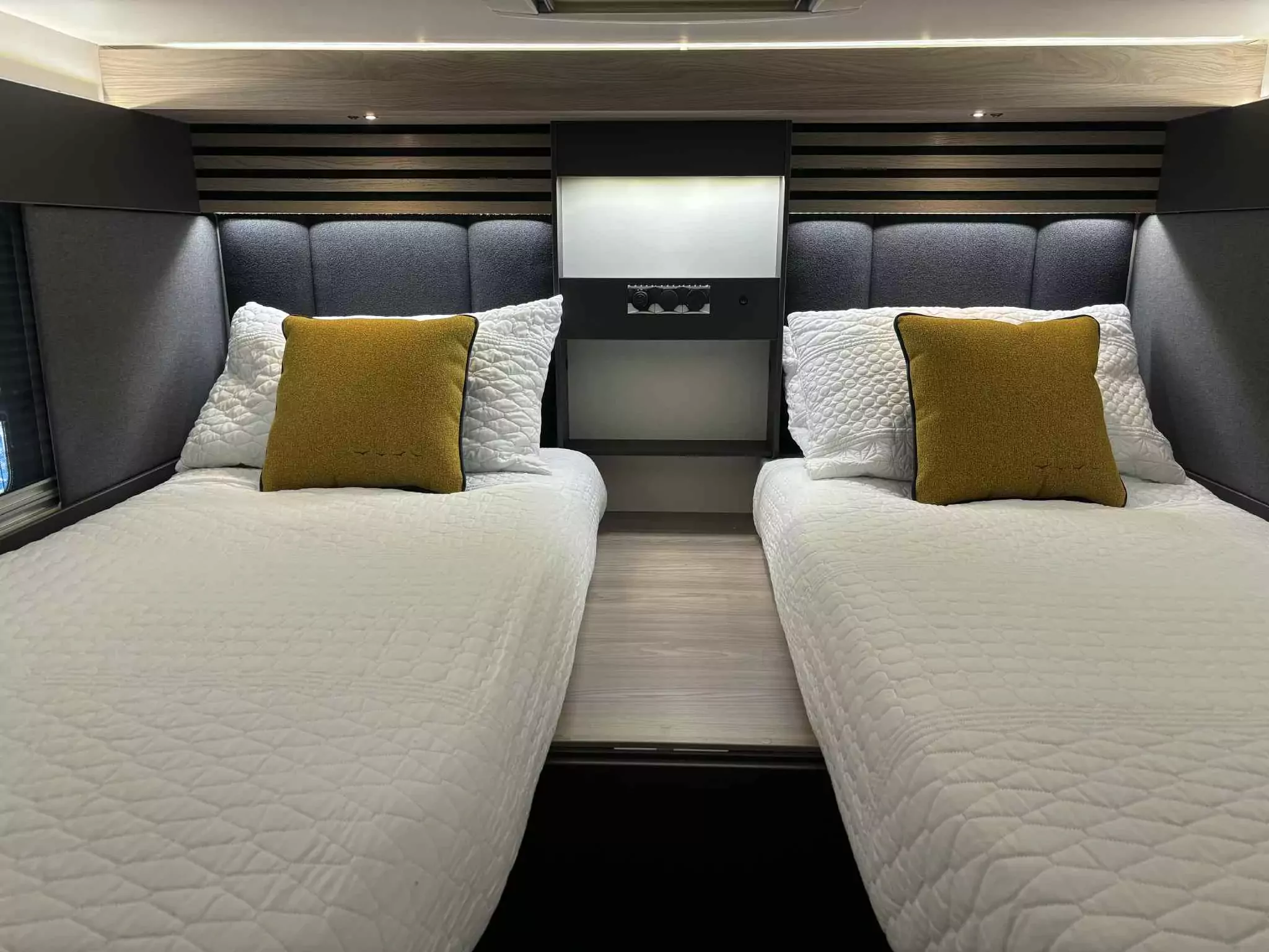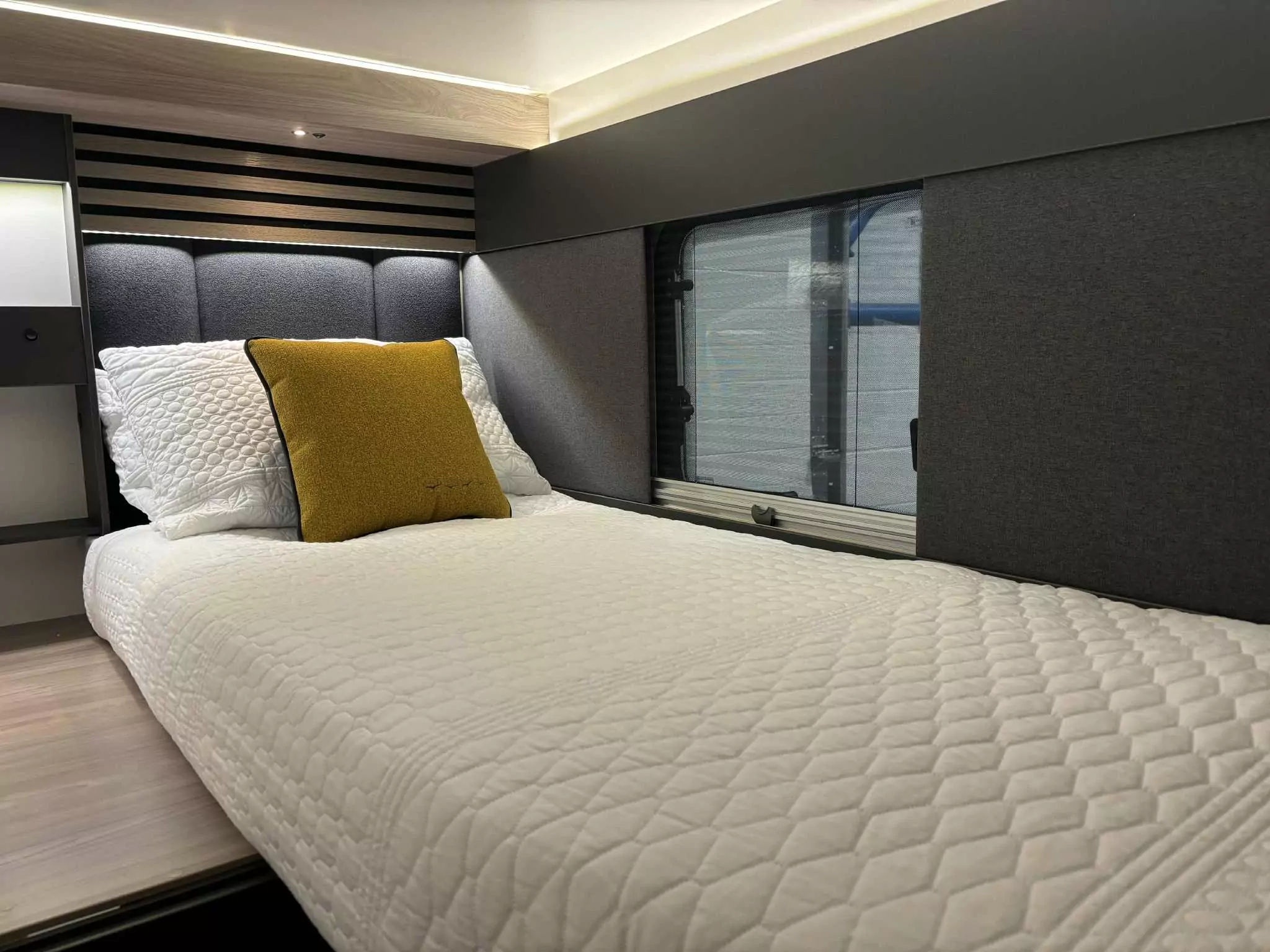 This low mileage motorhome offers a versatile 4-berth layout with a front dinette converting into a double bed, while the rear fixed single beds can easily convert into a generous double, making it ideal as a couples motorhome or family motorhome. The bright, adventure-ready interior provides excellent storage throughout, including a rear garage with lighting, perfect for outdoor gear or extended touring.