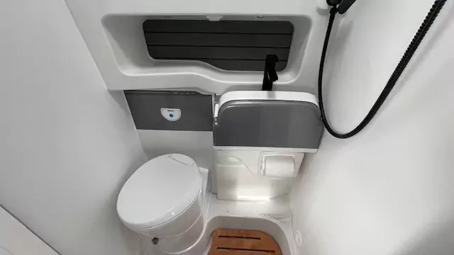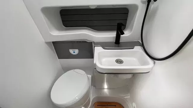 The washrooms have also been thoughtfully redesigned, featuring separate showers, foldaway basins, decorative illuminated panels, and Ecocamel Jetstorm showerheads that deliver a powerful flow while saving water. Practical touches such as concealed storage, waterproof fittings, and skylights with flyscreens make these spaces light, functional, and stylish.