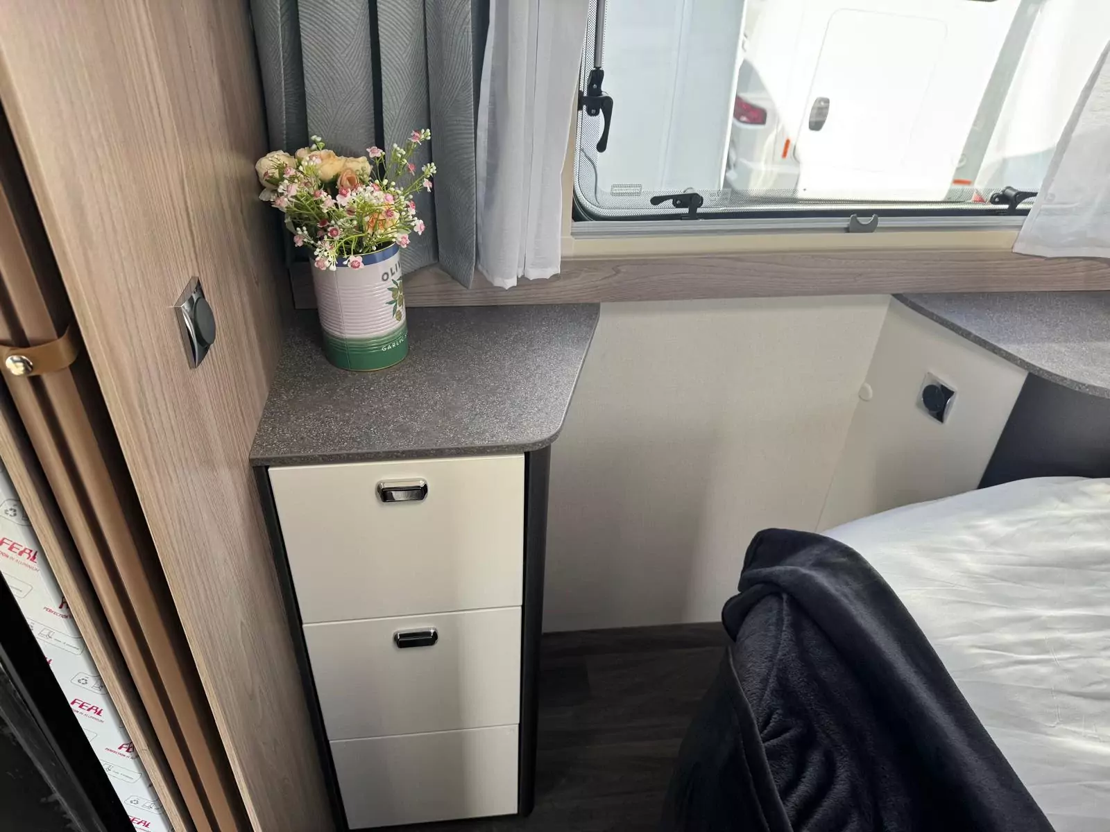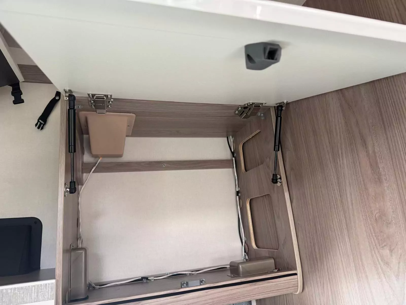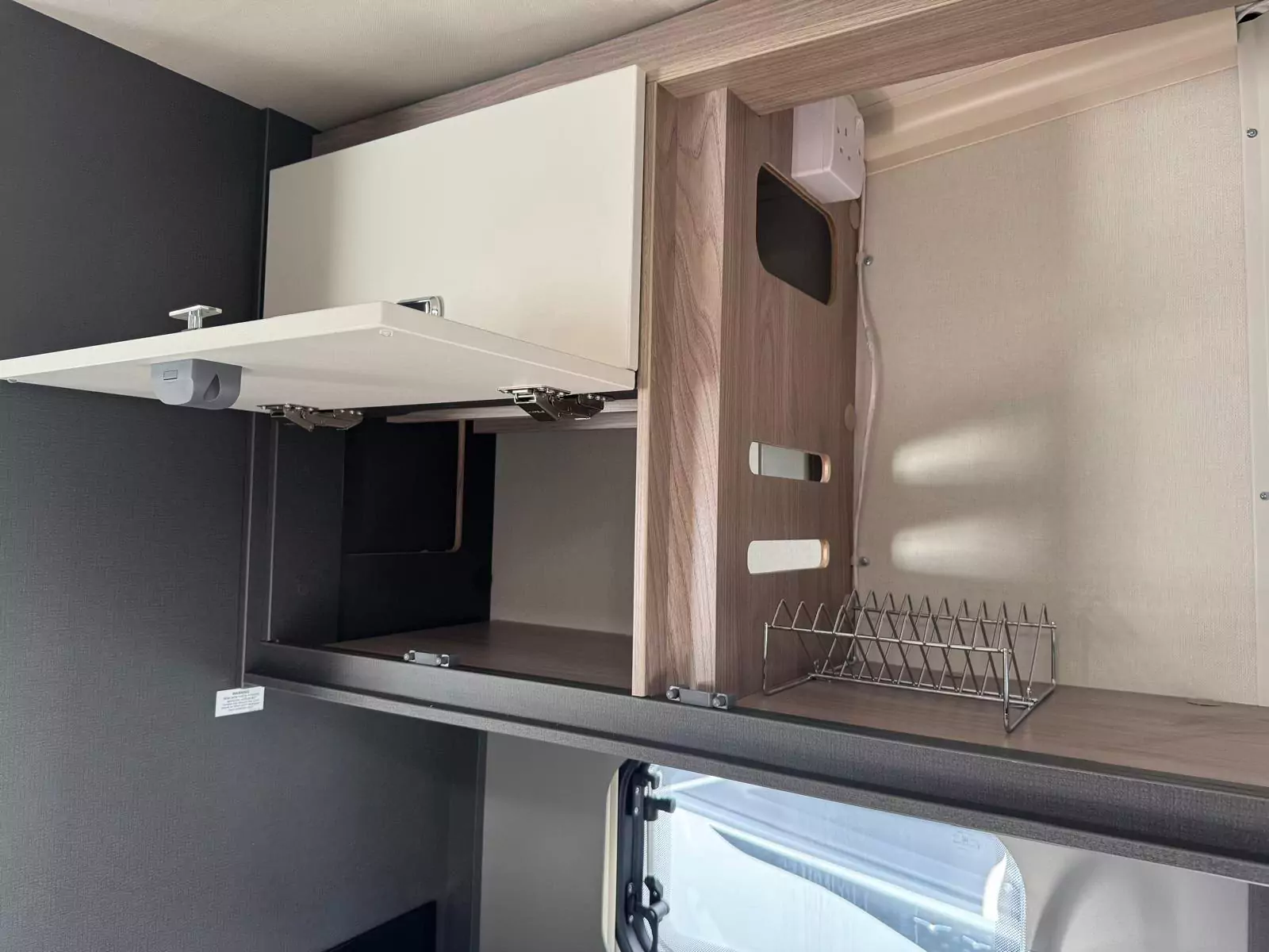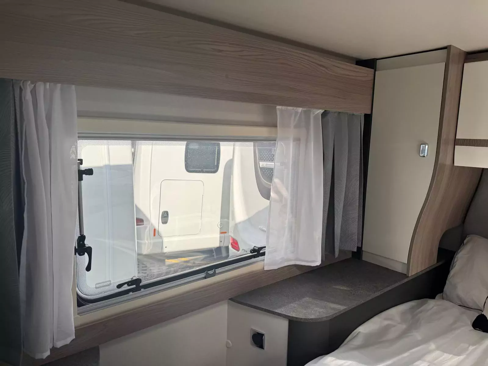 Step inside and you’ll find a refreshed Slate soft furnishing scheme, stain-resistant, easy-to-clean fabrics, and decorative Sangallo Elm woodgrain with modern gloss finishes. The interior is bright and spacious with a high 2110mm roof height, removable carpets, and smart storage solutions designed with families in mind. Sleeping arrangements are versatile, from fixed Duvalay Duvalite Alto mattresses to height-adjustable drop-down beds or overcab beds, ensuring everyone gets a restful night’s sleep.