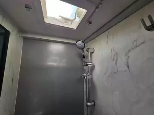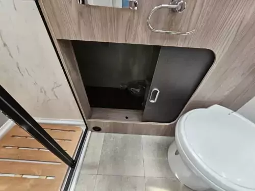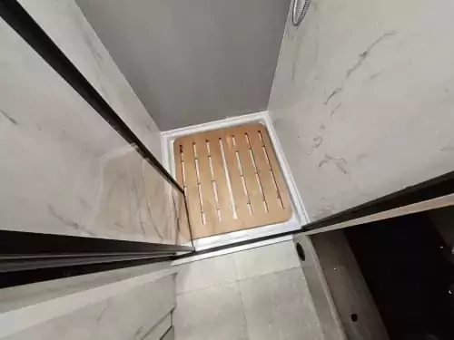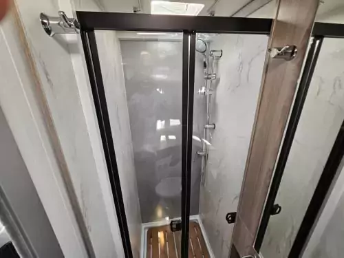 The washrooms have also been thoughtfully redesigned, featuring separate showers, foldaway basins, decorative illuminated panels, and Ecocamel Jetstorm showerheads that deliver a powerful flow while saving water. Practical touches such as concealed storage, waterproof fittings, and skylights with flyscreens make these spaces light, functional, and stylish.