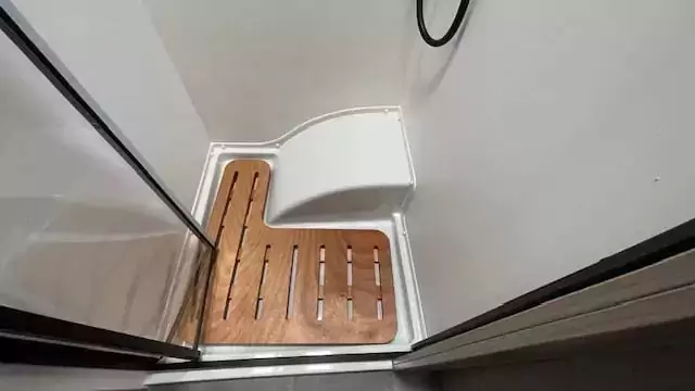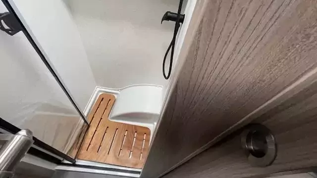 The washrooms have also been thoughtfully redesigned, featuring separate showers, foldaway basins, decorative illuminated panels, and Ecocamel Jetstorm showerheads that deliver a powerful flow while saving water. Practical touches such as concealed storage, waterproof fittings, and skylights with flyscreens make these spaces light, functional, and stylish.